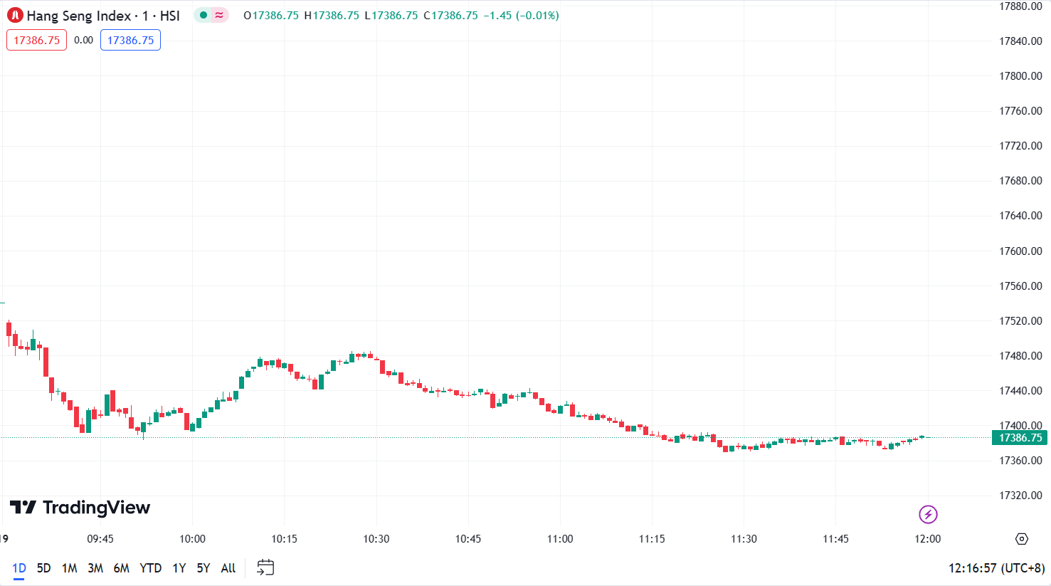 • Hang Seng Index (HSI) declined by 1.95%, closing at 17,386.75 points.