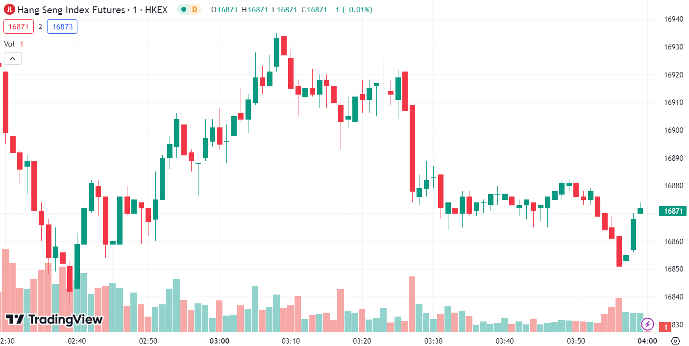 • Hang Seng Index (HSI) rose 0.55%, closing at 16,824.36.