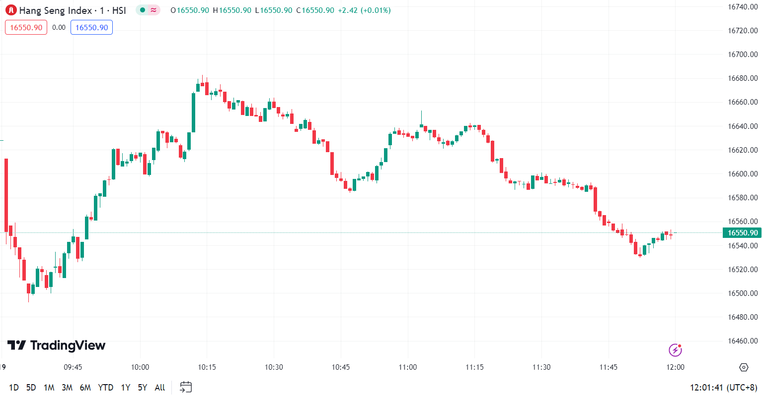 - Hang Seng Index (HSI) fell by 1.11% to close at 16,550.90 points.