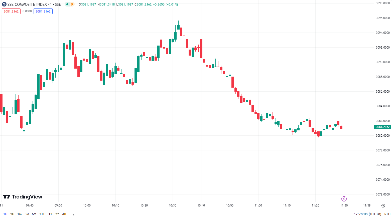 • Shanghai Composite Index (SHCOMP) increased by 0.19%, closing at 3,081.52.