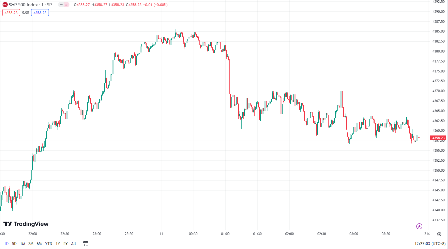 • S&P 500 Index increased by 22.58 points, up 0.52%, closing at 4,358.24.