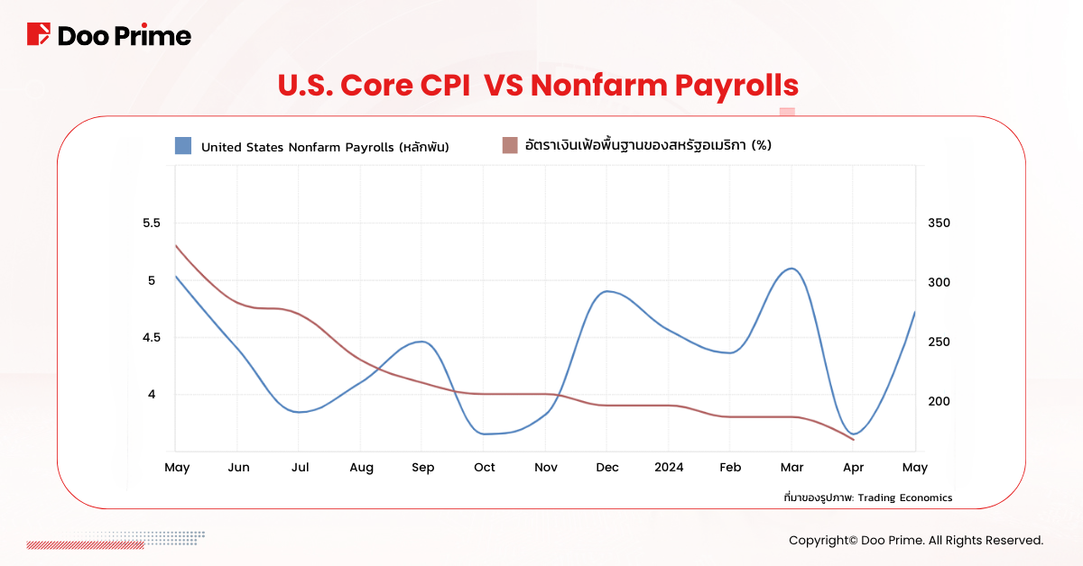 มาตรการเงินเฟ้อที่สำคัญของเฟด ซึ่งเป็นดัชนีราคาผู้บริโภคหลัก (CPI) ที่ไม่รวมราคาอาหารและพลังงาน ได้ลดลงอย่างต่อเนื่อง โดย CPI หลักของเดือนเมษายนเพิ่มขึ้น 0.3% เมื่อเทียบเป็นรายเดือน และ 3.6% เมื่อเทียบเป็นรายปี ซึ่งเป็นการเพิ่มขึ้นที่น้อยที่สุดในรอบเกือบเดือน สามปี