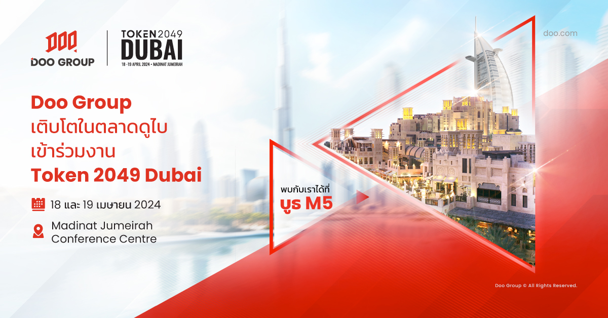 Doo Group รู้สึกตื่นเต้นที่จะมีส่วนร่วมใน งาน Token 2049 Dubai อันโด่งดัง ในฐานะผู้สนับสนุนระดับ Silver ซึ่งจะจัดขึ้นที่ Madinat Jumeirah Conference Centre ตั้งแต่วันที่ 18 เมษายน 2024 ถึง 19 เมษายน 2024