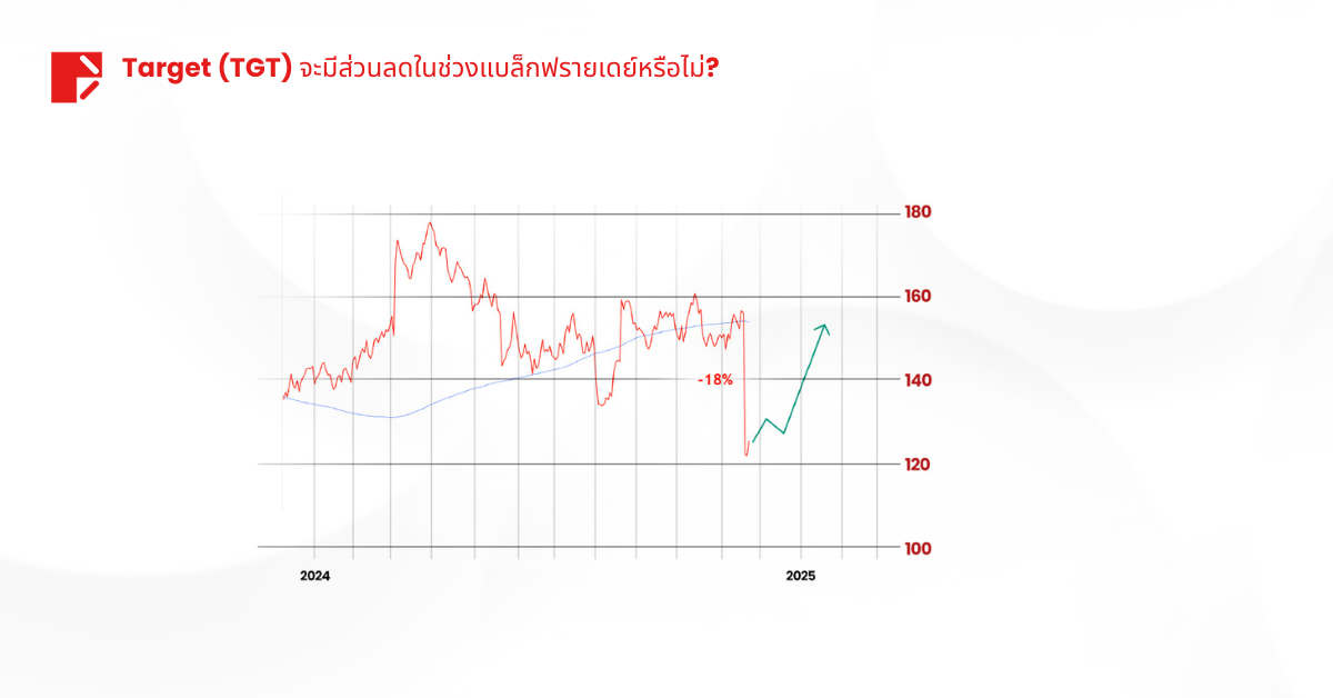หุ้นของ Target ร่วงลงอย่างหนักประมาณ 18% หลังจากผลประกอบการต่ำกว่าคาด ในขณะที่นักช้อปอาจตื่นเต้นกับส่วนลดในร้านช่วงแบล็กฟรายเดย์ แต่นักลงทุนกลับมองว่า TGT กำลังซื้อขายในราคาที่เหมือนถูกลดราคาด้วยเช่นกัน ด้วยความกังวลเกี่ยวกับการใช้จ่ายของผู้บริโภคที่อ่อนตัวลงและอัตรากำไรที่ลดลง ผลประกอบการของ Target ในช่วงเทศกาลวันหยุดนี้จึงมีความสำคัญอย่างยิ่งในการชี้ว่านี่เป็นโอกาสในการเข้าซื้อ หรือเป็นสัญญาณเตือนถึงการปรับตัวลงที่อาจเกิดขึ้นต่อไป