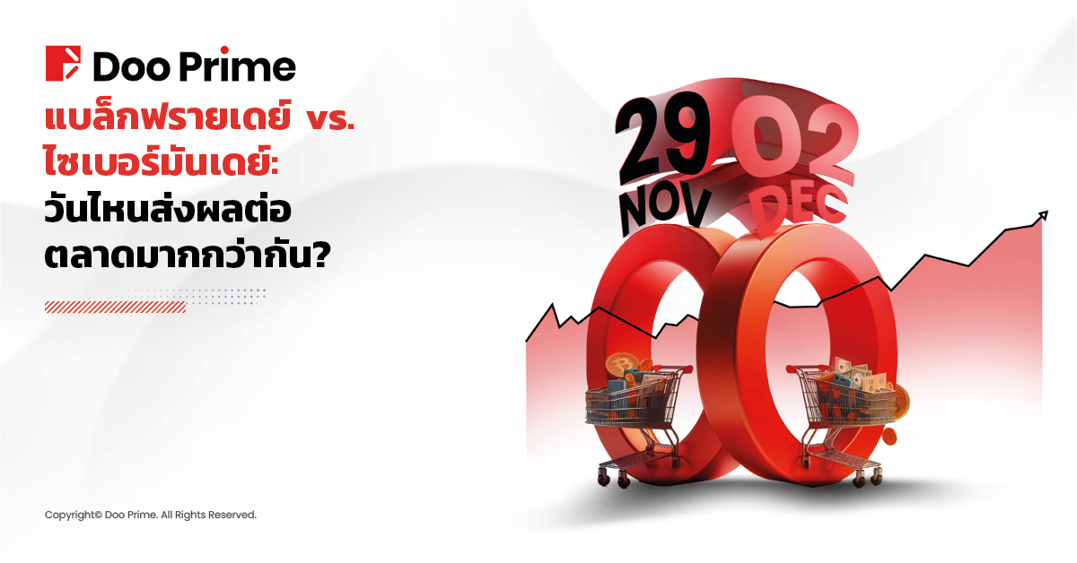 แบล็กฟรายเดย์ vs. ไซเบอร์มันเดย์ : วันไหนส่งผลต่อตลาดมากกว่ากัน? ทุกปี นักช้อปต่างรอคอยแบล็กฟรายเดย์และไซเบอร์มันเดย์อย่างใจจดใจจ่อ เพื่อคว้าข้อเสนอสุดพิเศษ