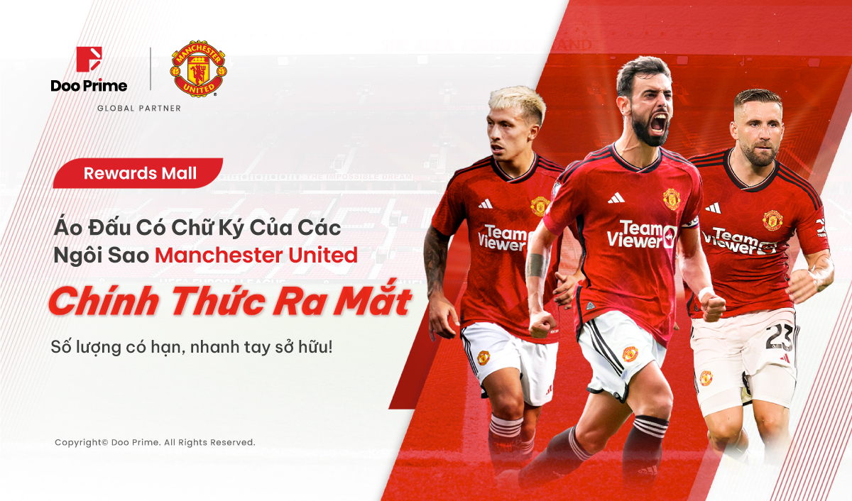 Ngoài áo thi đấu có chữ ký của Manchester United, bạn cũng có thể đổi nhiều phần thưởng độc quyền của Doo Group X Manchester United trên Rewards Mall. Với các phần thưởng hấp dẫn như như ba lô, áo khoác, cốc thể thao, v.v. Nhấp vào liên kết để đổi thưởng ngay. Doo Prime sẽ tiếp tục mang đến cho bạn nhiều bất ngờ hơn nữa và cùng bạn chào đón mùa bóng đá mới, cùng nhau bắt đầu cuộc hành trình giao dịch tuyệt vời.