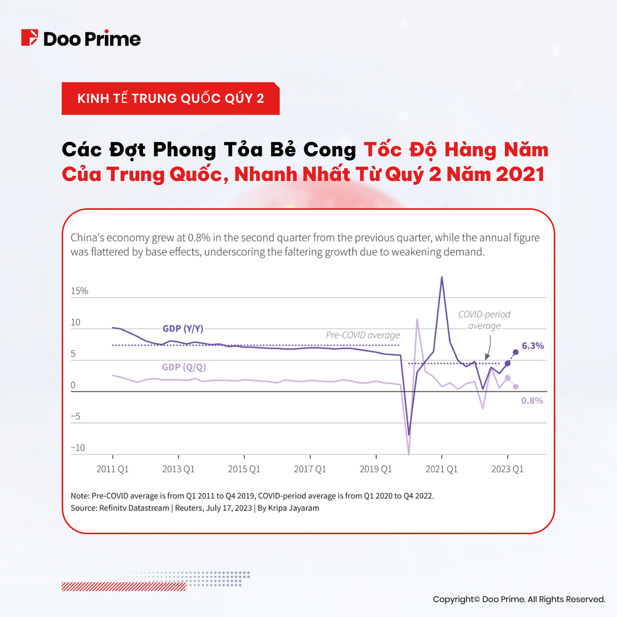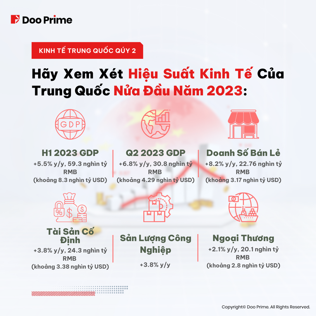 Trong nửa đầu năm 2023, kinh tế Trung Quốc đã thể hiện các tín hiệu hồi phục ổn định hậu COVID, vượt qua mục tiêu tăng trưởng GDP nửa năm. Đáng chú ý, quý 2 chứng kiến sự cải thiện đáng kể ở các ngành dịch vụ và tiêu dùng. Vào tháng 6, các sản phẩm công nghiệp và sản xuất chứng kiến mức tăng tốt hơn so với tháng trước đó.